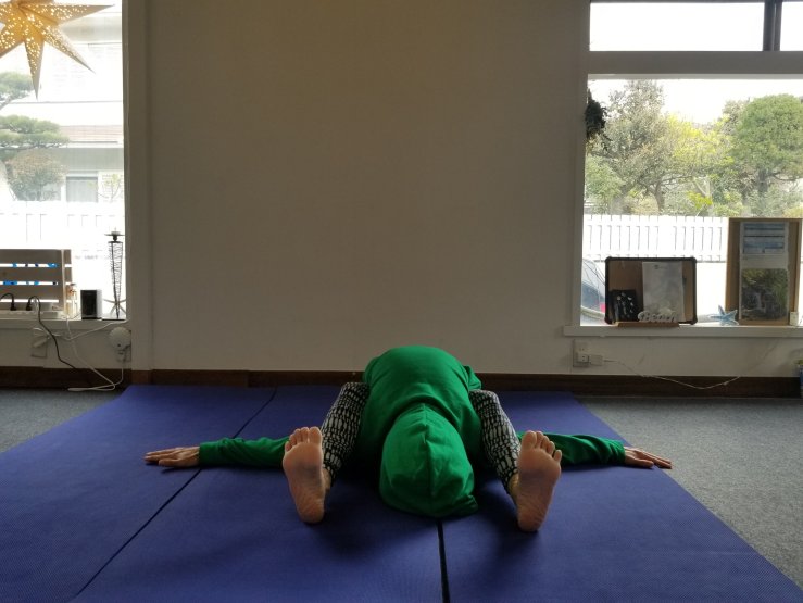 ブルーのマットにグリーンの衣装(笑)で、海に横たわる亀をイメージ