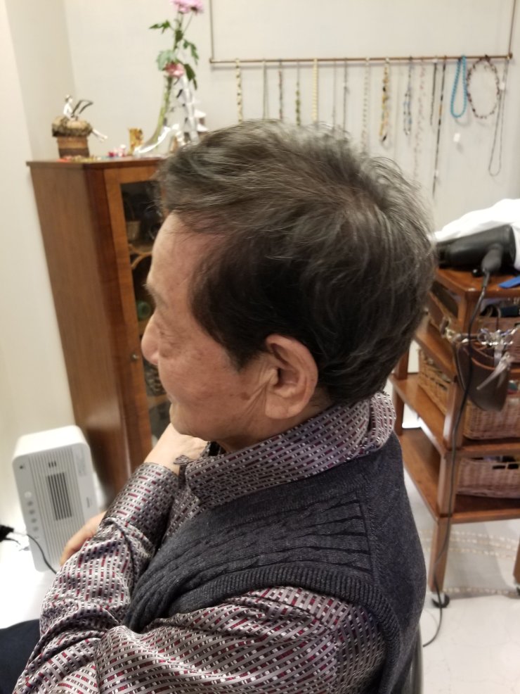 いつも短め、ぴっちりポマードで髪をなでつけていた父に、まずは髪を伸ばしてもらうことを伝えて5ケ月目でいざ出陣~