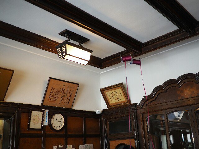 包装紙にかける紐、昔ながらに天井からつるされているのをカラカラとひっぱるのです✨