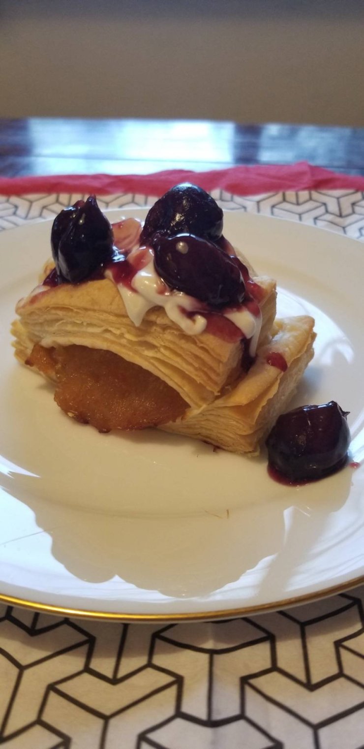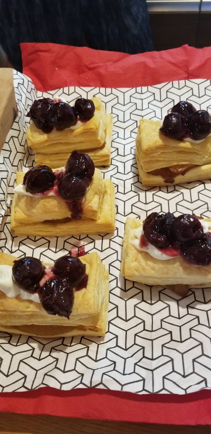 今日はマスカルポーネ&ダークチェリーソース🍒を添えて