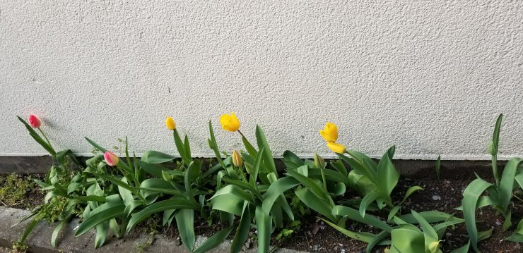 古民家ヨガの帰り道、石段を降りるとチューリップ