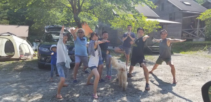 ヨガクラス後に追いかけたら、ヨガのポーズで出迎えてくれました~(笑)