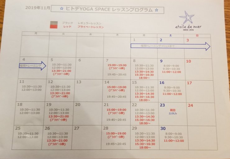 11月スケジュールです~