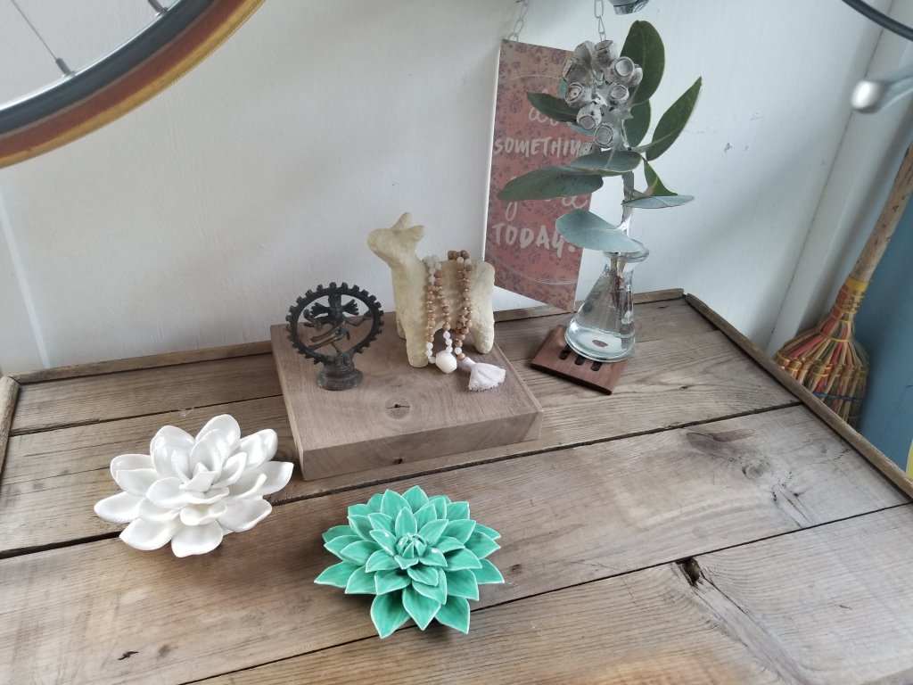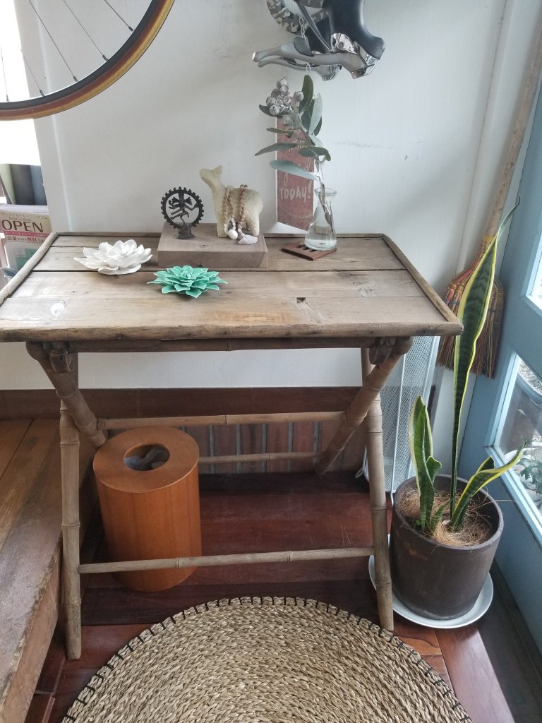脚が竹の素敵なテーブルをいただいて、ヒトデ入り口のデコレーションかえてみました~