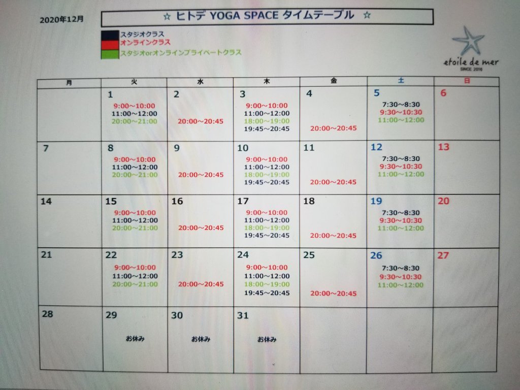 12月のスケジュールできました~